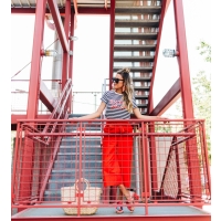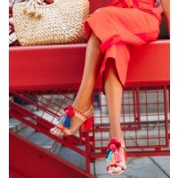 It’s a common joke in the house that when I get passionate about things I get really animated, move my hands around a lot, or raise my voice (when I’m not even mad). Or when we argue (yes we argue haha and it’s usually over really dumb things), Cody always teases me that I can get feisty and attributes it to my ‘spicy latin blood’ (I’m half Colombian – so when I saw this shirt I had to get it and it looks even better in person. I love the intersection of a graphic tee with embellishment – how good are these tassels! I definitely haven’t been shying away from bright colors lately. I love these bold red Kate Spade pants and they are actually really versatile! I’ve already worn them multiple times. And the statement bow totally makes them unique and a statement piece. And of course the shoes! I never shy away from pom poms!! Obsessed with these sandals!
